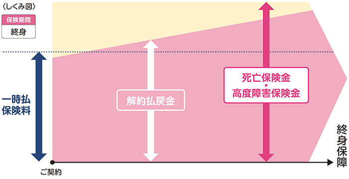 ・資金が必要なときに解約払戻金をご利用いただけます。(ご契約後短期間で解約すると、解約払戻金額は一時払保険料を下回ることがあります。)